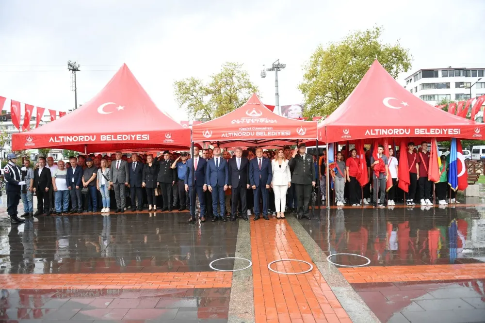 Altınordu Kaymakamı Erhan Karahan ve Altınordu Belediye Başkanı Ulaş Tepe’nin anıt önüne çelenk bırakmasıyla başlayan tören, saygı duruşunda bulunulması ve İstiklal Marşı’nın okunmasıyla devam etti.