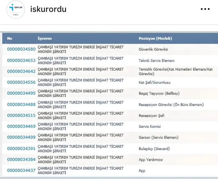 Resimde görünen çesitli mesleklerde personel alımı yapılacak. Çalışanlar için konaklama imkanı verilecek.