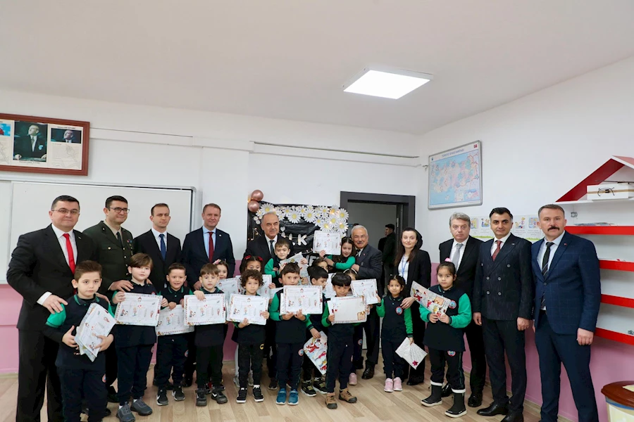 Burada protokol üyeleri ile birlikte ilk olarak 1/A sınıfı öğrencilerine karnelerini veren Vali Muammer Erol, ilk kez karne alan öğrencilerin sevincine ve heyecanına ortak oldu.