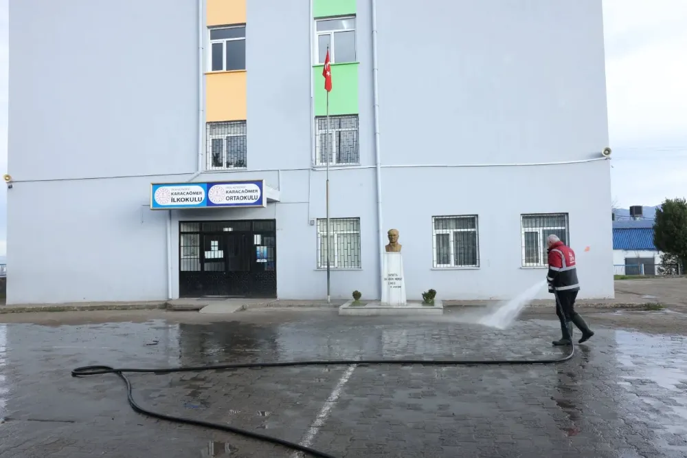 Altınordu Belediyesi Temizlik İşleri Müdürlüğü ekipleri tarafından yürütülen çalışmalar kapsamında, okul bahçeleri ile öğrencilerin yoğun olarak kullandığı ortak alanlar detaylı şekilde yıkanarak temizlendi. Özellikle teneffüs alanları, giriş-çıkış noktaları ve ortak kullanım alanları titizlikle dezenfekte edilerek hijyen koşulları üst seviyeye çıkarıldı.
